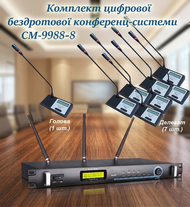Комплект цифровой беспроводной конференц-системы Emiter-S CM-9988-8 для конференц-залов, школ, институтов