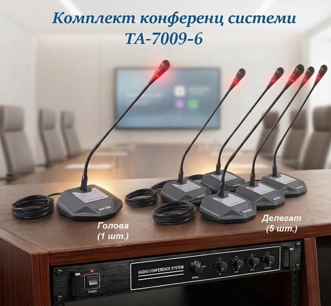 Комплект проводной конференц-системы TA-7009-6 для небольших конференц-залов, школ, институтов