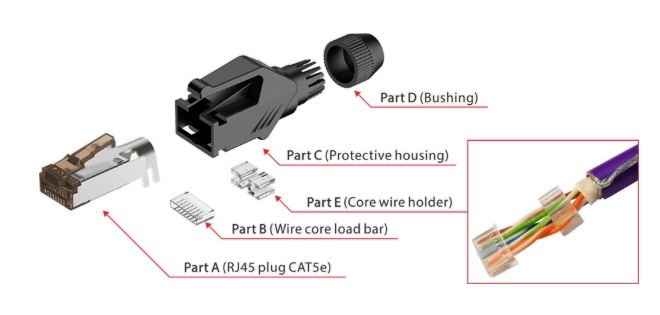 Нейлоновый защитный кожух (часть C) со специально разработанной системой зажима кабеля, подходит для кабеля диаметром до 7,0 мм