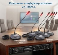 Комплект проводной конференц-системы TA-7009-6 для небольших конференц-залов, школ, институтов