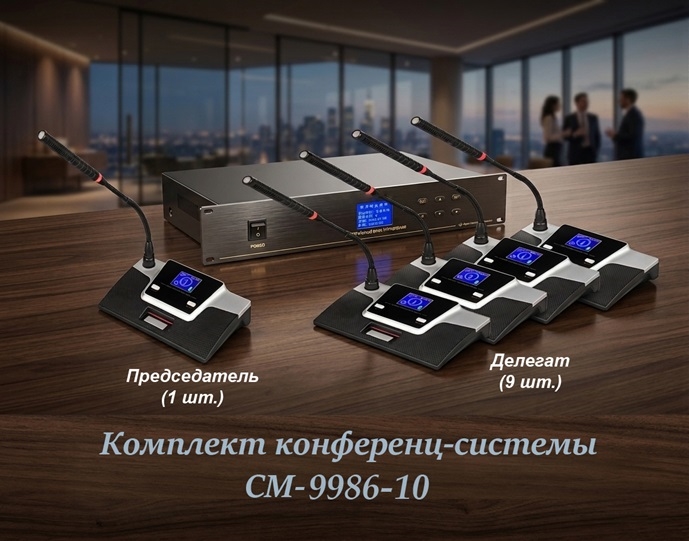 Комплект проводной конференц-системы CM-9986-10 для небольших конференц-залов, школ, институтов