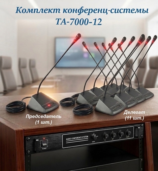 Комплект проводной конференц-системы TA-7000-12 для небольших конференц-залов, школ, институтов