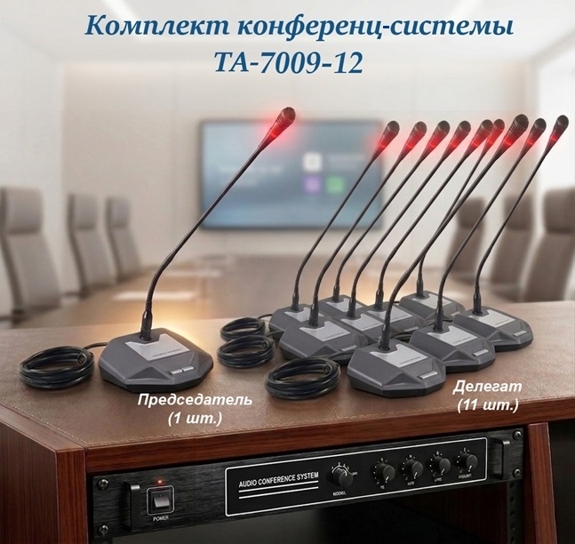 Комплект проводной конференц-системы TA-7009-12 для небольших конференц-залов, школ, институтов
