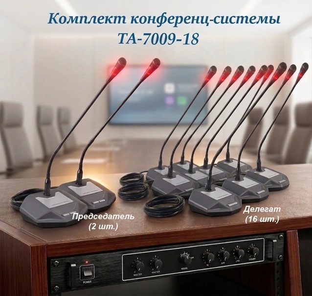 Комплект проводной конференц-системы TA-7009-18 для конференц-залов, школ, институтов