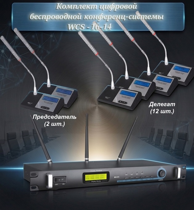 Комплект цифровой беспроводной конференц-системы Emiter-S WCS-16-14 для конференц-залов, школ, институтов