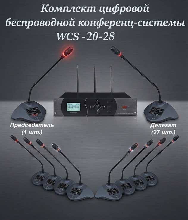 Комплект цифровой беспроводной конференц-системы Emiter-S WCS-20-28 для конференц-залов, школ, институтов