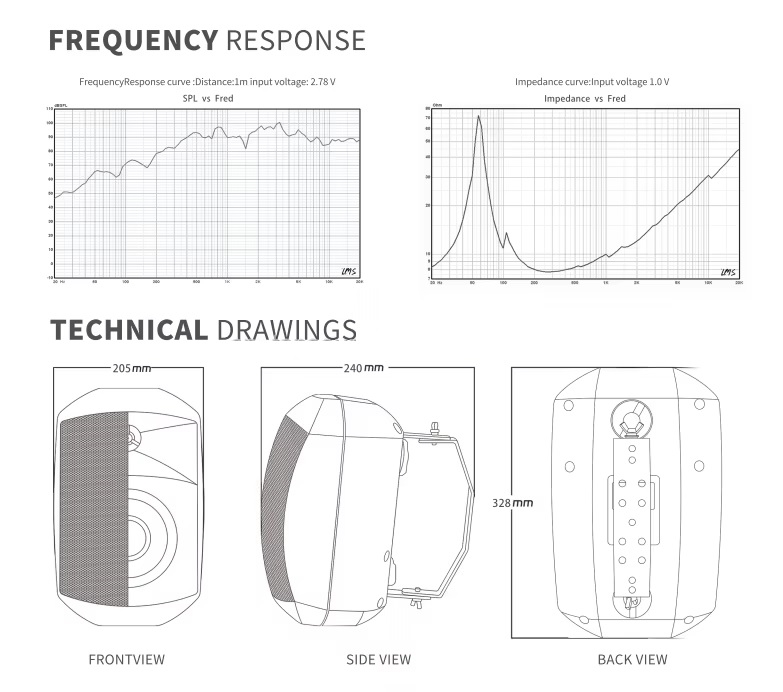 Размеры динамиков: НЧ 6.5"(166 мм), ВЧ 0.5" (13 мм) нейлон