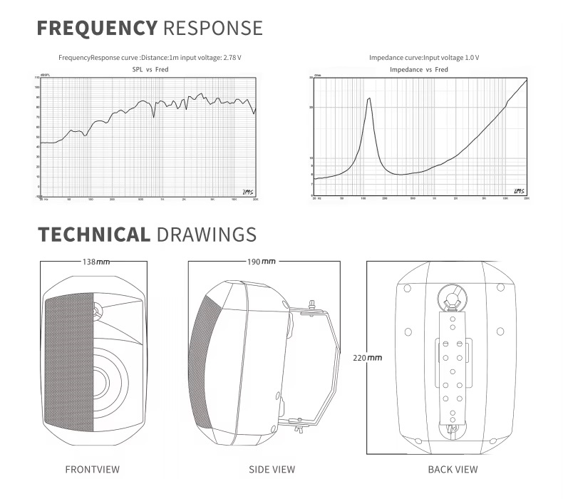 Размеры динамиков: НЧ 4"(103 мм), ВЧ 0.5" (13 мм)