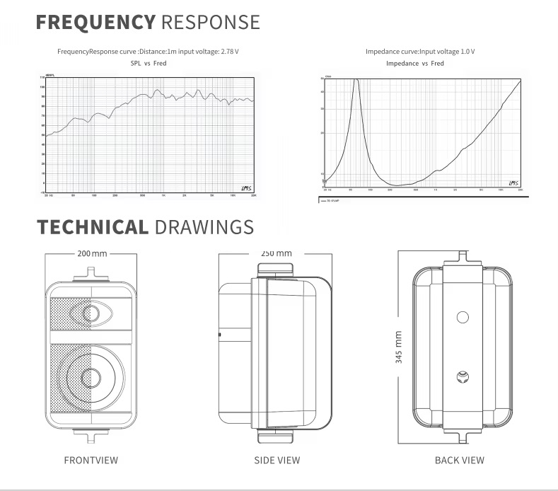 Размеры динамиков: НЧ 6.5"(166 мм), ВЧ 0.5" (13 мм) нейлон